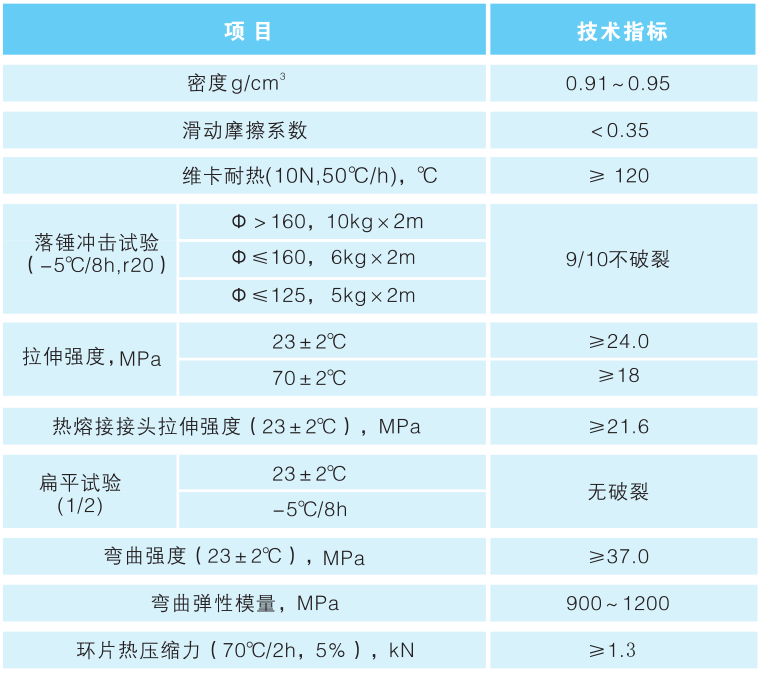 質輕、光滑、磨擦阻力小,可熱熔焊對接。
