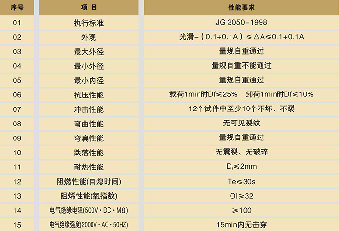PVC電工套管產品物理性能